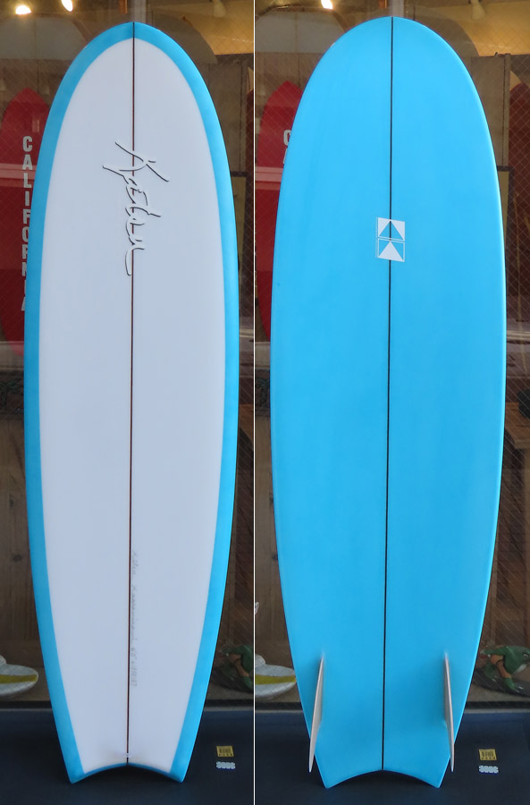 オーダーいただいたMOON FISHが出来上がりました。レングスは6フィートちょうどです。一見すると、もうひとつのラウンドノーズのツインフィンのBOOGIEと似ているように見えるかもしれません。でも同じなのは、ラウンドノーズとフィンが二つということだけです。