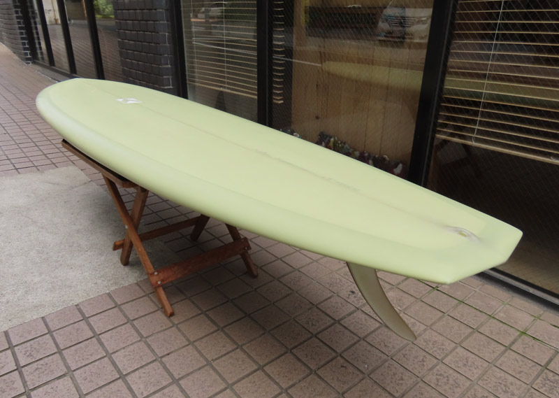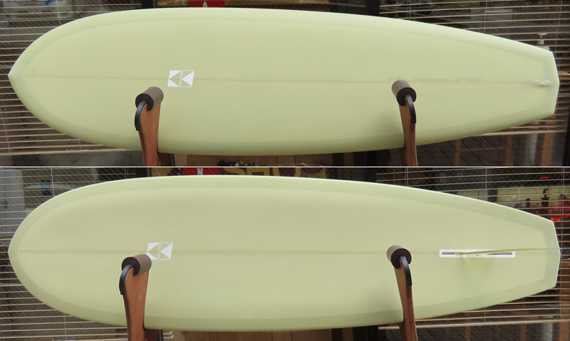 ダイアモンドテールのボードが出来上がりました。まずは6’8”のシングルフィン。お店のストックボードです。