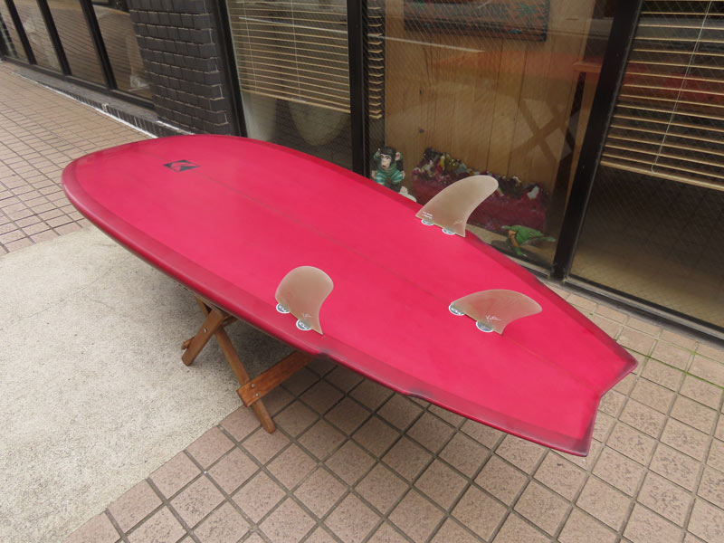 フィンはツインスタビ。ボトムはフラット~VEEです。オーダーいただいた方が、今乗られているシングルコンケーブのトライよりもルースで動きが軽くなります。
