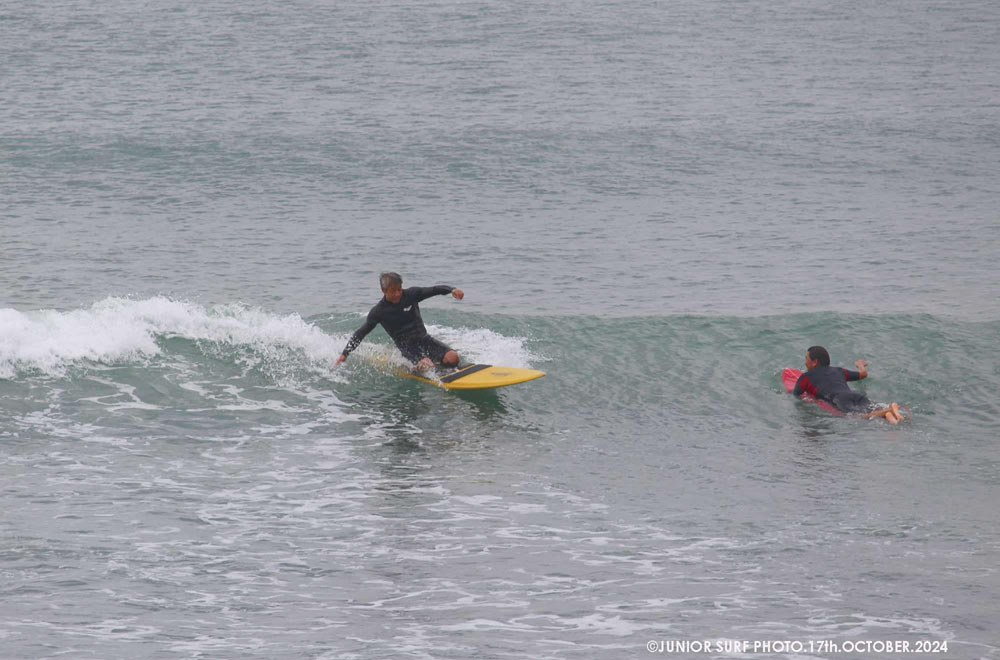 波はヒザ・モモ、たまにコシくらい。ゆるいブレイクのロングボードコンディション。長いニーボードのセッティングには絶好のコンディションです。