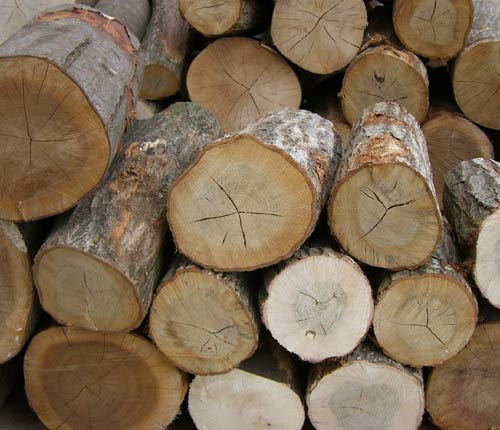 朝に夕に火を焚いて暖を取っている。燃やしているのは森から間伐された広葉樹の幹だ。一定の長さに切りそろえた丸太を斧で割って薪にする。