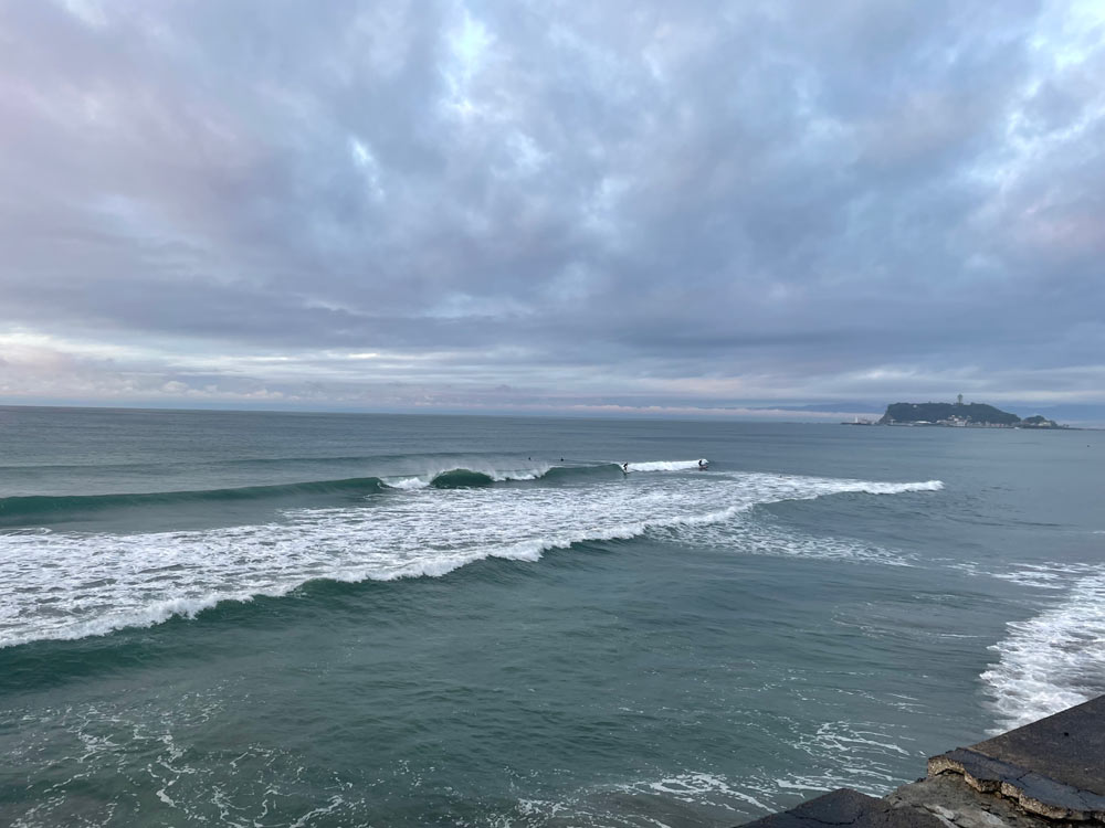 昨日は日中通して潮位が高い潮回りだったので、早朝の潮位がいちばん低い時間帯を狙いましたが、もうたっぷりな感じです。波はハラから、たまにムネくらいです。