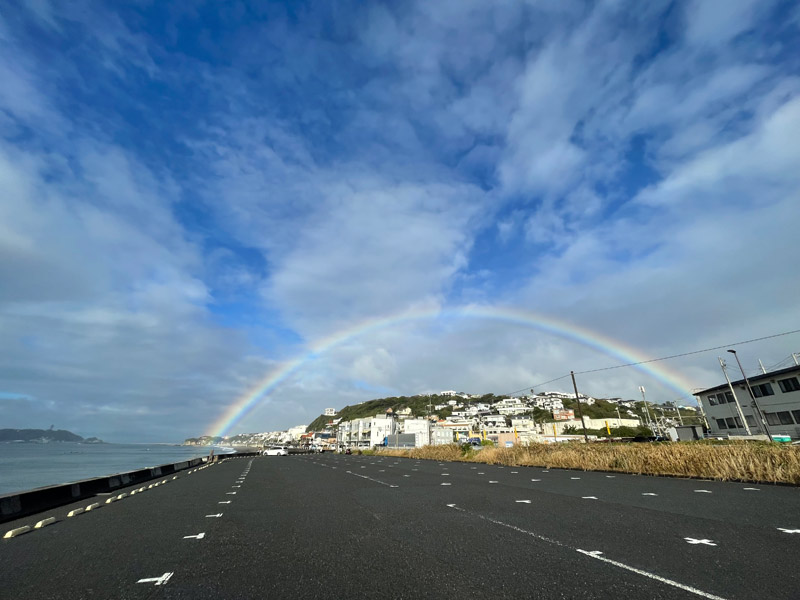 あまりにも虹がきれいなので、虹のふもとには何があるんだっけ?と波待ちしながら回りの人と話をしていましたが、虹のふもとには宝物(幸福)があるそうです。