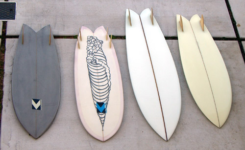 一口にフィッシュと言っても私一人でもこれだけのバリエーションがあります。サイズ、アウトライン、ボトムのシェイプ、フィンの数などの組み合わせによってたくさんの種類のフィッシュを作り出すことができます。