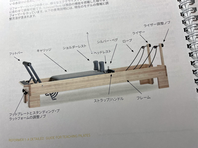 「リフォーマー、reformer」、つまり身体をリフォームするためのマシンという意味です。ピラティスの創始者、ジョゼフ・ピラティスさんは第一次大戦中の捕虜収容所で、ベッドのスプリングなどを使ってこのリフォーマーの基になるものを作り出したというのですから、とても頭が良い人だったんでしょうね。
