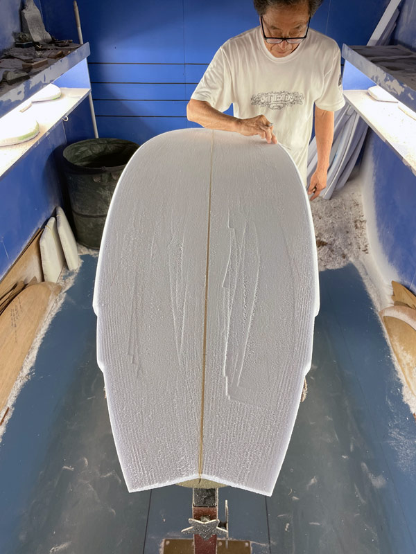 ショップのオープンは2001年。それ以来、ロングボードをベースに、フィッシュ、ボンザー、シングルフィン、ニーボード、パイポとさまざまな種類のサーフボードを作り、試してきました。