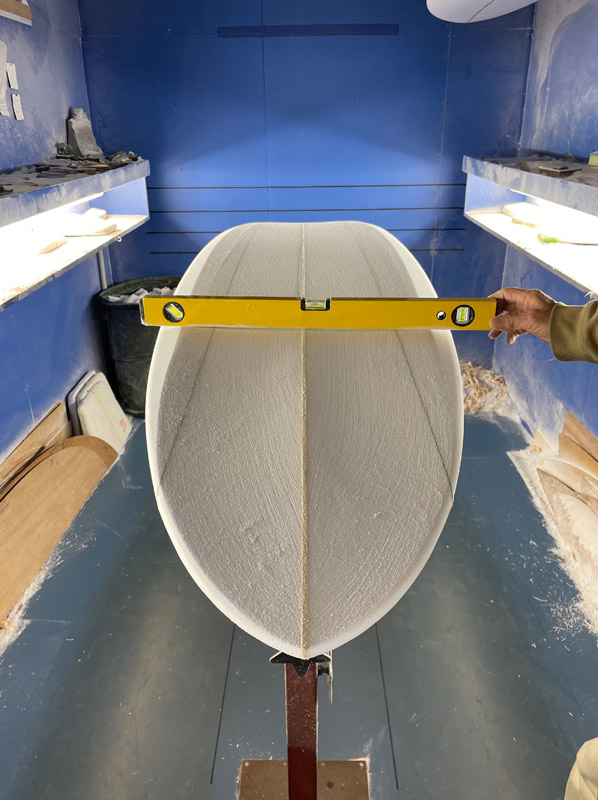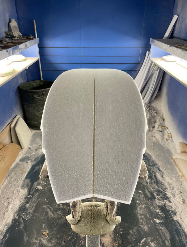ポピュラーなシングルダブルのボトムですが、シェイプ途中のボードのボトムを見ているとそんなことを考えてしまいます。非凡が作り出す「普通」なんて、ワクワクしませんか?そんなこと考えていたら、ついうっかりシェイプダストを吸い込んで喉が大変なことになってしまいました。