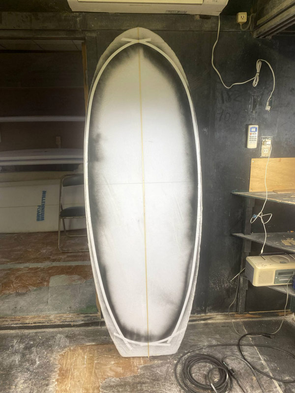 二本目のニーボードはハルボトムがベースです。シェイパーの新井くんはハルのシェイプも得意としています。どんなシェイプが出てくるか、かなり楽しみです。