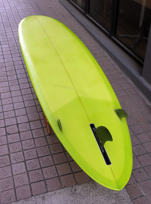 ユーズドボードが入荷しました。カツカワミナミサーフボード、活さんシェイプの7’8”シングルスタビです。まずチェック、という方はこちらへどうぞ。