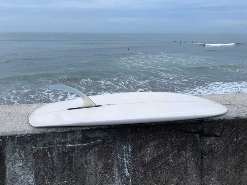 例えばロングボードです(ミッドレングスでも)。ボトムがロールやフラットなものと、プリモのようなコンケーブボトムとでは全く違う感覚、感触があります。10’6”のグライダーは浮力の大きな違いが全く違う世界を見せてくれます。