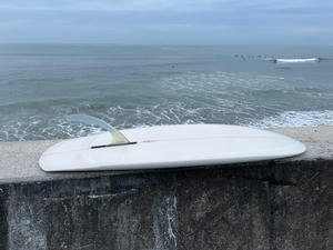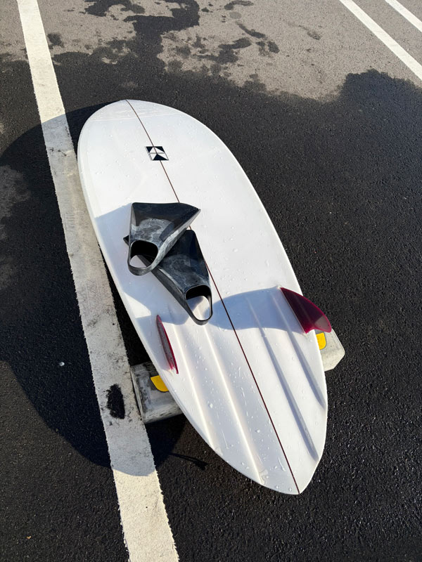 チャネルボトムとツインフィンの組み合わせは、スタンディングで作り始めたものですが、ニーボードとの相性はとても良いと感じています。これまで乗ってきたトライフィンやシングルフィンとも違う、活さんオリジナルのデザイン、それもかなり優れたデザインだと思います。