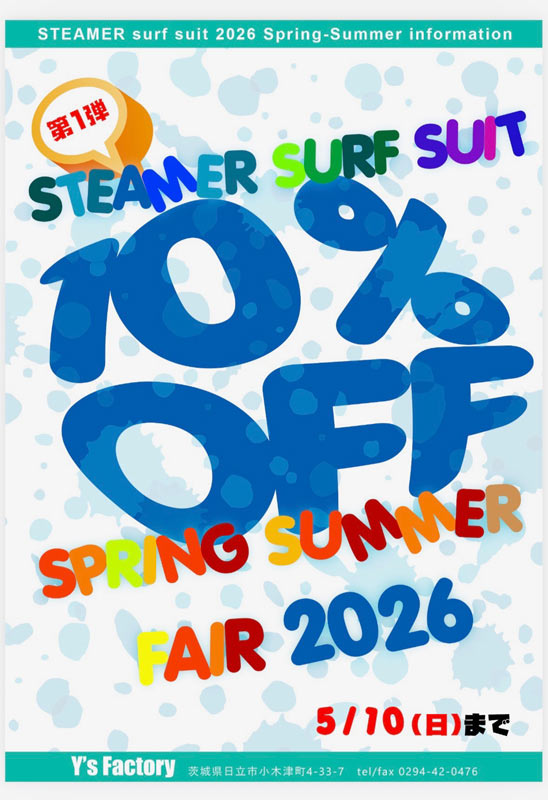STEAMERサーフスーツ、AXXE CLASSIC オーダーフェア開催中!!