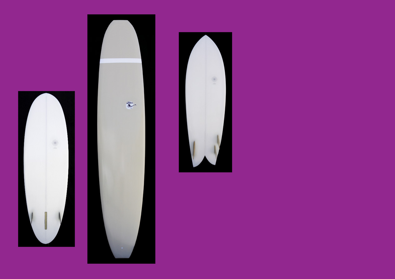 ショップのオープンは2001年。それ以来、ロングボードをベースに、フィッシュ、ボンザー、シングルフィン、ニーボード、パイポとさまざまな種類のサーフボードを作り、試してきました。