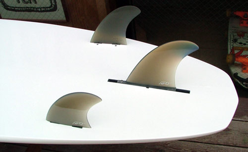 そしてフィン。GLASS LOVEの中でもニールパーチェスがフィンにかなりこだわっているところが映し出されていましたが、そのニールパーチェスが試行錯誤の末に生み出したのがこのフィンセッティングです。センターがBOXの2+1のセッティングですが、通常のスタビライザーよりもサイドフィンが大きめに4.6インチ、センターフィンは5.5インチと独特の組み合わせのフレックスするフィンが付けられています。このフィンがいったいどんな感じなのか?次回は6.2のカツさんのボンザーとこいつを2本抱えて海へ行ってみたいと思います。