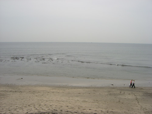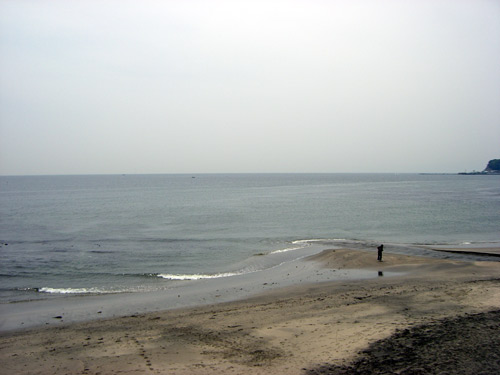 写真を撮っていると隣にロングボードをルーフに乗せた車が。そのサーファーは海をじっとみて私に「ここってこんなに引くもんなんですか?」と間抜けな質問。一瞬返答に詰まりましたが、「大潮でしょ」(本当は中潮)と冷たく一言。サーファーなら潮廻りくらい気にしなさい!