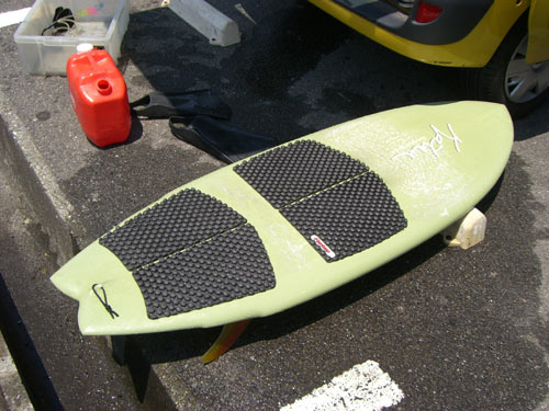 今日はニーボードには少々物足りないコンディションでしたがそれなりに楽しめました。ニーボードはガリガリに潮が引いたところに、ドカンとうねりが届いときが最高に面白い乗り物です。身体が出来てきて、ボードに要求することが判ってきたので、もっと過激に動けるように改造してみようと思ってます。おニューのニーボードも楽しみです。