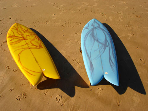 ショップのオープンは2001年。それ以来、ロングボードをベースに、フィッシュ、ボンザー、シングルフィン、ニーボード、パイポとさまざまな種類のサーフボードを作り、試してきました。
