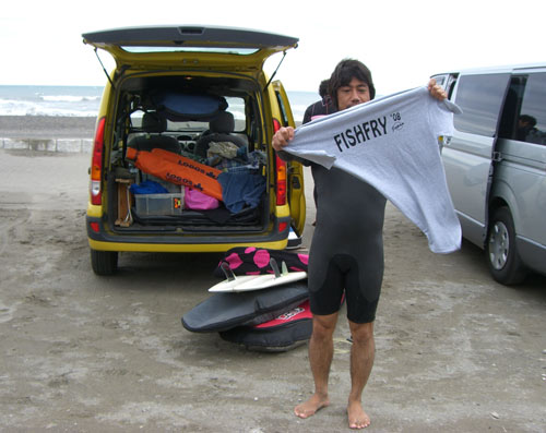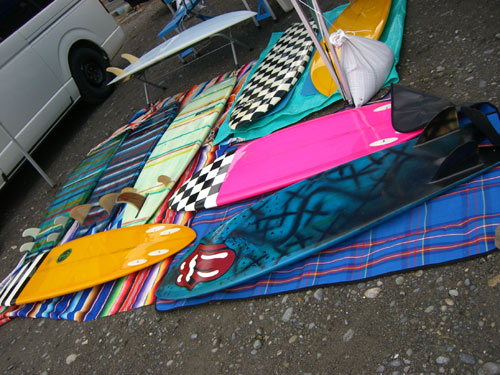 波は残念ながらサイドの強いオンショア。強い流れも入っていいコンディションとは言えませんでしたが、皆さん積極的にいろいろなフィッシュを試乗していました。私もニーボードで入水。パドルしっぱなしでポジションをキープして四本ほど乗って陸へ戻りました。新しいニーボード、スピードとスムースさは天下一品ですが改良すべき点も出てきました。フィンを少しいじってみようと思ってます。(この話はまた別の機会に)