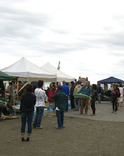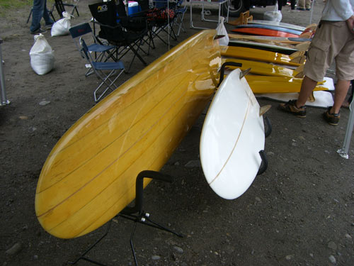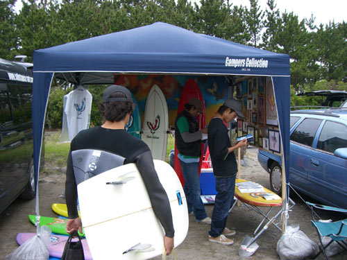 強めの風が吹いていたものの心配していた雨は降りませんでした。おかげで会場内にはかなりのんびりとした雰囲気が流れていました。パベルさんのフィッシュを試乗したサーファーがパベルさんと話しています。こんな光景が会場のあちこちで普通に見られました。