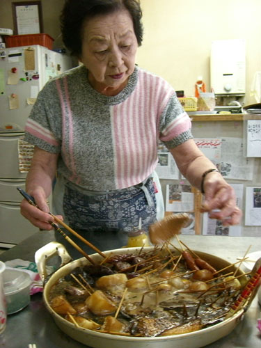 自分の母親と話しているみたいで、建物の雰囲気といいおでんの味(ウマイ!)といいなんだか昔にタイムスリップしたような感じでした。途中からこの店に子供の頃から通い続けているというおじいさんも同席して、なんだか始めていったお店とは思えないくらい和んでしまいました。おじいさんは土産のおでんをおごってくれるし、なんだかとても暖かい気持ちで店を後にしました。