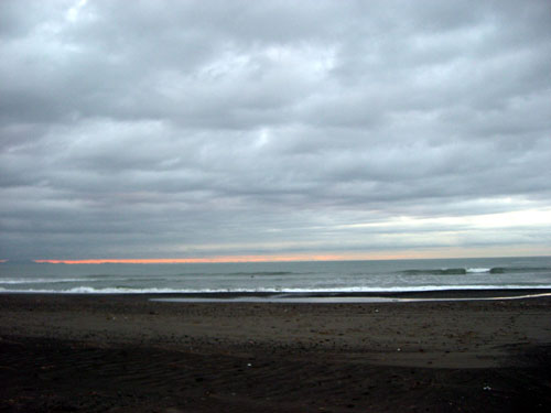 午前七時半、静波海岸到着。