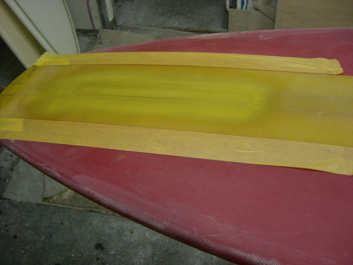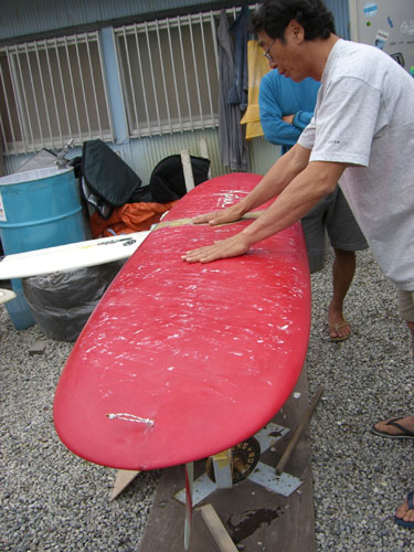 ミッキームニョスの12フィートのヴィンテージをレストア中。何度も何度も色を重ね、廻りの色と合わせていきます。うちのリペア、高くてすいませんが、とても手間かかってます。だから出来上がりのクオリティも高いです。
