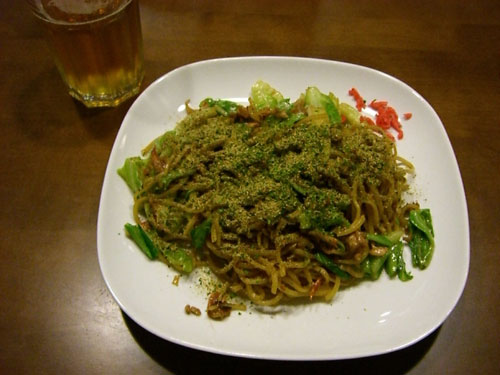 静岡富士宮の焼きそば。昨日の晩ご飯です。フィッシュフライまだ引きずってます。