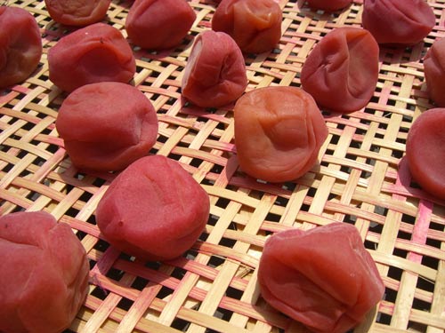 こちらもお楽しみ。昨日は曇りがちだったのでダメでしたが、今日はいよいよ土用干し二日目。干すとそれまで厚っぽい感じだった梅の皮が薄くつまめるような手触りに変わってきました。初めての梅干作りでしたが、やっているうちになんとなく勘といいますか、やり方がわかってきたといいますか、そんな気がします。付きっ切りというわけにはいかないので外に出しっぱなしです。夕立降らないでちょうだい!雨降りそうになったら帰っちゃうかも…(笑)
