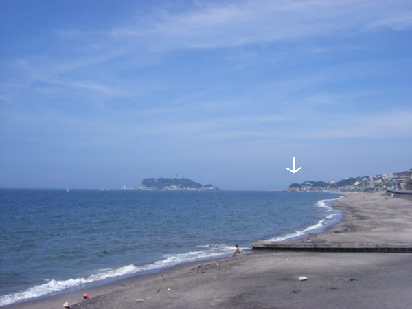 とにかくパドルしたい私はグライダーでロングパドル。小動岬(矢印のところ)まで往復してきました。距離にしてだいたい3kmくらい。久しぶりの海の水が気持ちよかったです。