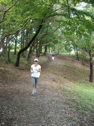 すぐに春には桜がきれいな広場へ。下って、登って右の写真でまた下ってます。