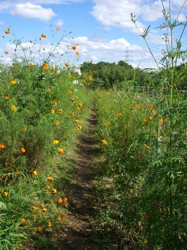 また走りはじめます。畑の横の細い道。素朴な彼岸花が季節を感じさせます。