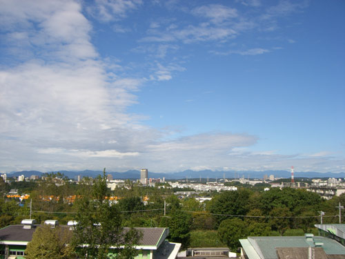 登りきったところには見晴らし広場があります。富士山から丹沢、秩父山系、そのはるか彼方の山々まで見渡せます。遠くに西武球場も見えます。普段は休みませんが、今日は景色を見ながら一休み。