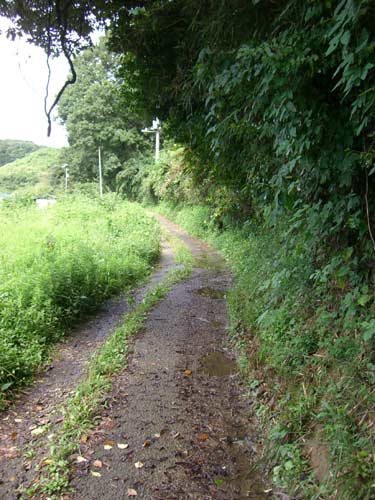田んぼの横の崩れかけた道路は緩やかな登り坂になっていきます。