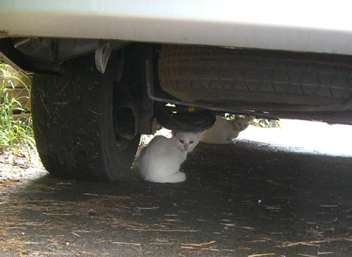 田んぼの横の道路の子猫。ちょっと前まで民家の床下で「ミーミー」鳴いていたのが、大きくなりました。