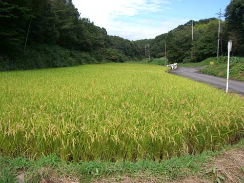 坂を下りきると谷戸田の風景が広がります。稲穂が重そうに垂れています。