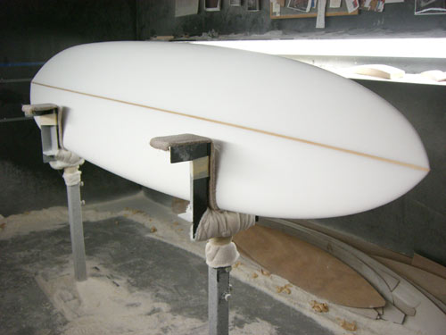 Yさんのカスタムオーダーのミニモデル/トライフィンのシェイプが完了しました。通常、6.8のミニモデルを8フィートまでストレッチしています。テイクオフは速そうだし、良く動きそうなロングミニです。ロングボードでは大きすぎる人、レディスサーファー、ロングのフィーリングでもっともっとボードを振り回したい人にオススメです。楽しめそうなシェイプです。後ほど画像をお送りします。