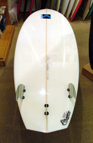 5’8”BONITO フィンは、2 + 1。 ボトムはフラットに近いごく軽いシングルコンケーブです。