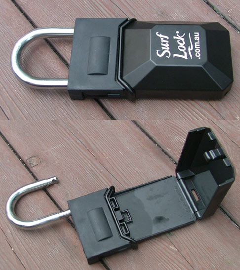 こんなものがオーストラリアから届きました。その名もSURF LOCK。アメリカのバケレンのルームキーを入れるキーBOXと同じ作りになっていてかなり頑丈です。オーストラリアの製品ですが問い合わせたところ日本にもかなりの数量を送ったとのことでしたので、どこかで買えるはずです…って検索してみたらひっかかりました。私は直接オーストラリアから送ってもらいましたが、国内の方が安いみたいです。(ちなみにAUSD$58 + S/H)