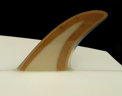 ロングボード一辺倒だったころから、好きなんですシングルフィン。ボトムで引っ掛かる「物」が少ないので、ラインは大きめになりがちですが小さな弧を描くようなカットバックをしてもラインはスムースできれいです。フィッシュに最初に乗ったときに感じたのは直線的なテールのアウトラインで左右どちらかのフィンを使って走っていく、シングルフィンみたいなスムースさ(シングルとは違いますが)