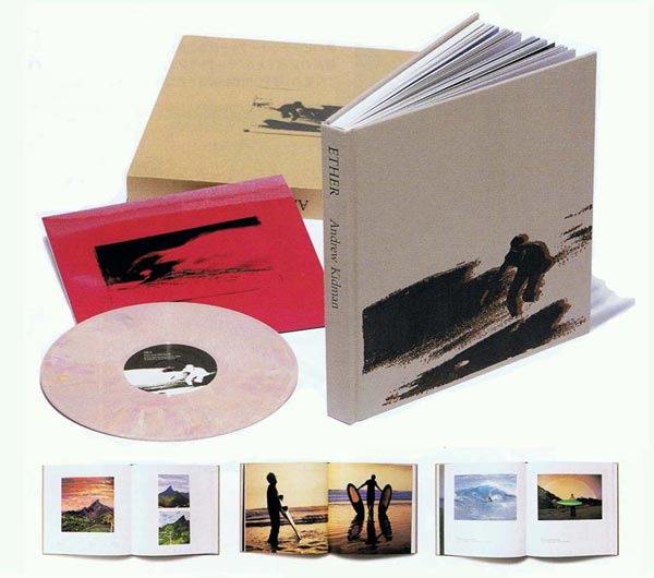 Last Christmas Ether was in the throws of production; the 252 page, fine art book featuring Andrew Kidman’s photography, artwork, writing and interviews was released in January 2008. Each copy of Ether is signed and numbered and comes with a 10” coloured vinyl record with music by Andrew Kidman.
