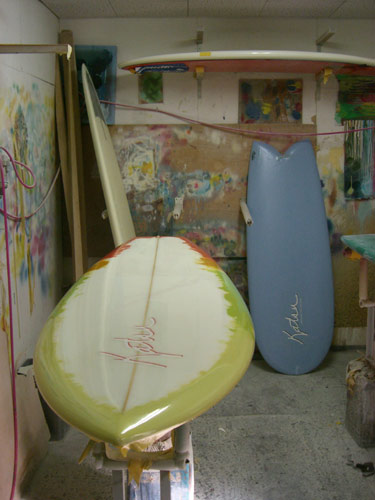 ショップのオープンは2001年。それ以来、ロングボードをベースに、フィッシュ、ボンザー、シングルフィン、ニーボード、パイポとさまざまな種類のサーフボードを作り、試してきました。