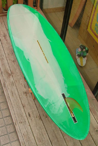 お店には、ステュ・ケンソンのシングルフィンのユーズドボードがやってきました。ジョエル・チューダーサーフボードでステュ・ケンソンがシェイプしていた、グッドカルマを以前借りてしばらく乗っていたことがあるのですが、これはそれと同じシェイプのシングルです。よく走ってくれる調子いいシングルです。ホームページのユーズドボードのコーナーをご覧ください。