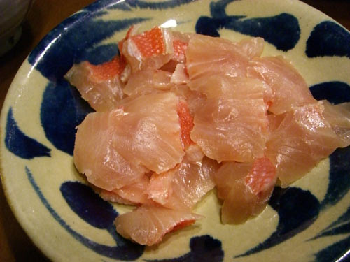 もう半分は好物の松皮造りにしました。魚の皮の旨みとコリっとした食感が楽しめる食べ方です。