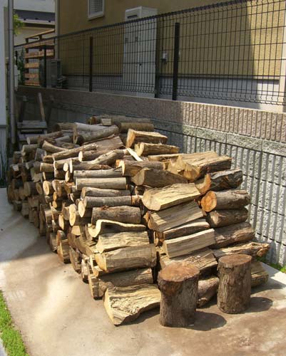 丸太の玉切りようやく終了。波乗りもしたいし、ランニングもしたいしで、薪作りはすっかりサボリ気味です。アリとキリギリスじゃあありませんが、いま動いておかないと冬にキリギリスになってしまいます。頑張って薪割ろうっと。