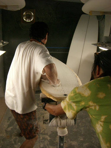 サーフボードファクトリーに着いてみると、シェイプルームから地引網を引くような威勢のいい掛け声が聞こえてきます。