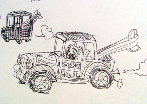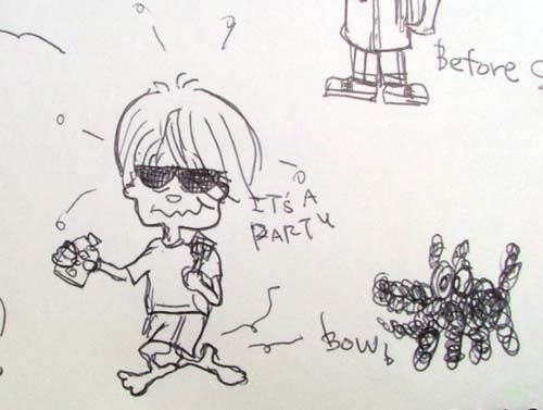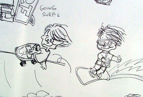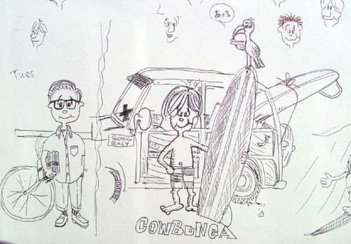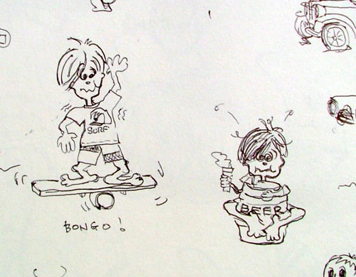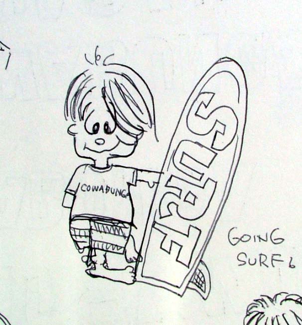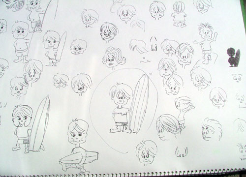 10年前のスケッチブックより。サーフボーイ、感動の誕生の瞬間。いろんな顔がありますが「コイツに決まり!」みたいな感じで丸ついてます。