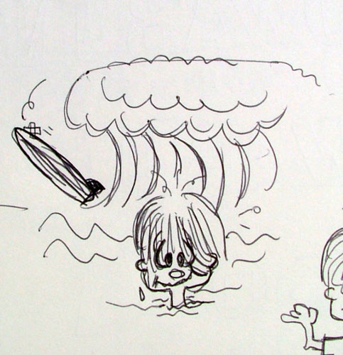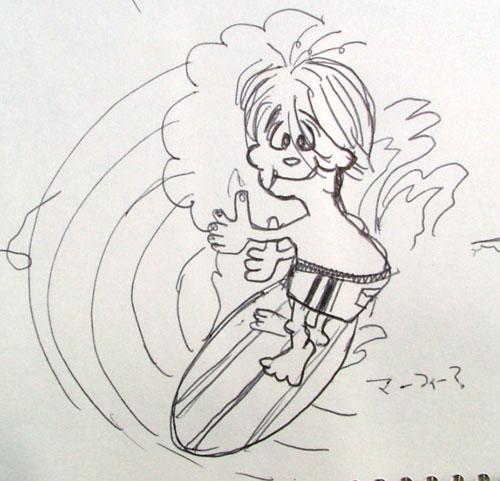 メネフネビーチストアのキャラクター、サーフボードを持った男の子のうしろ姿の原画を以前ご紹介したと思いますが、彼にはこのポーズの他にまだまだたくさんの表情が隠されていたのです。