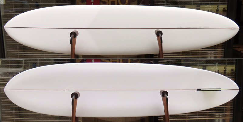 ミッドレングスのツインフィンは、同じアウトラインでテールをフィッシュにしたロングフィッシュがあります。