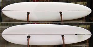 実は10フィートプラスの長さでのツインフィンは、10’6”のシングルを作ったときにすでに考えていたのです。ツインフィン・グライダーです。