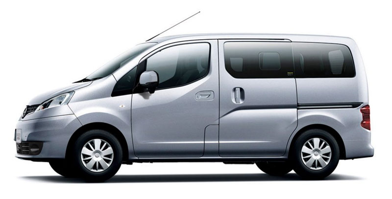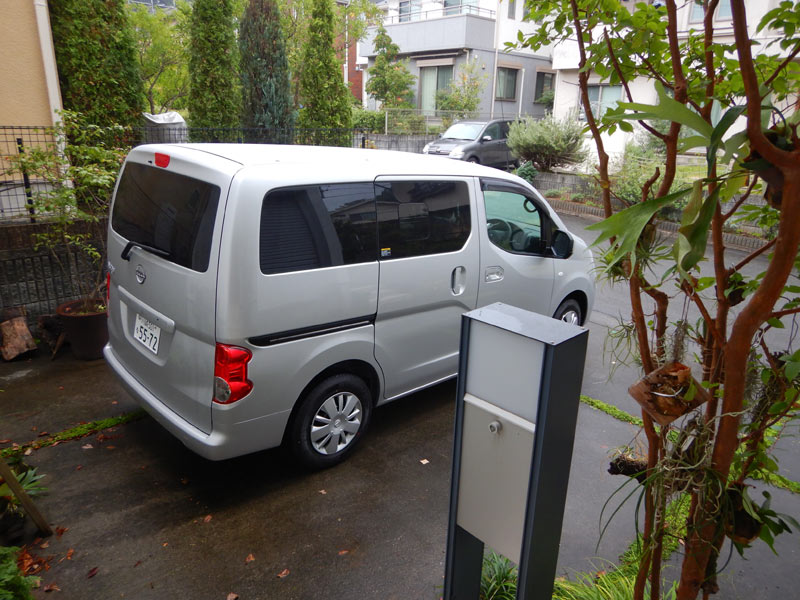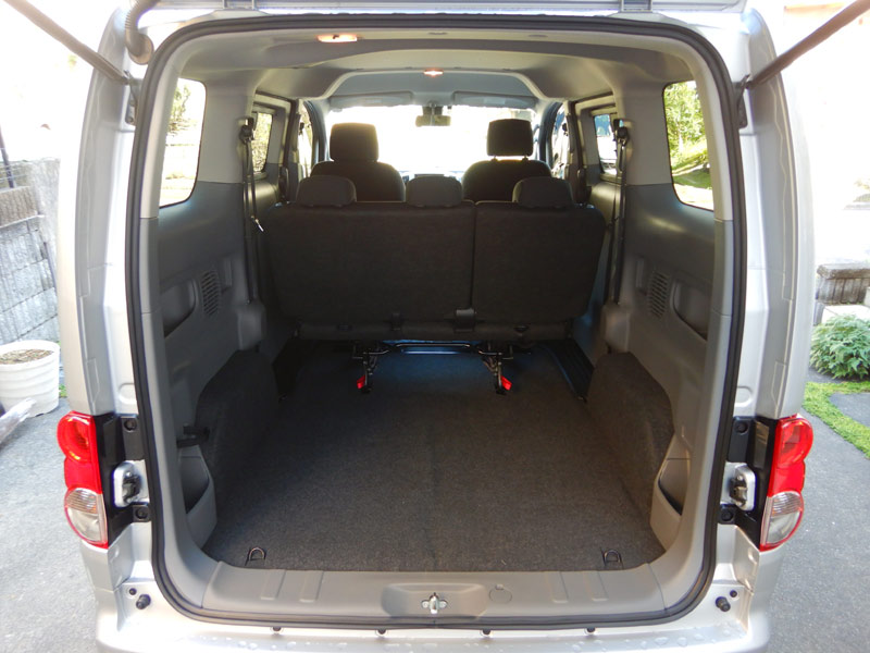 新しい車はニッサンのNV200という商用車のワゴン(乗用車)タイプです。中は出っ張りが少ないすっきりスペースで、これから自分色に作っていくのが楽しみです。